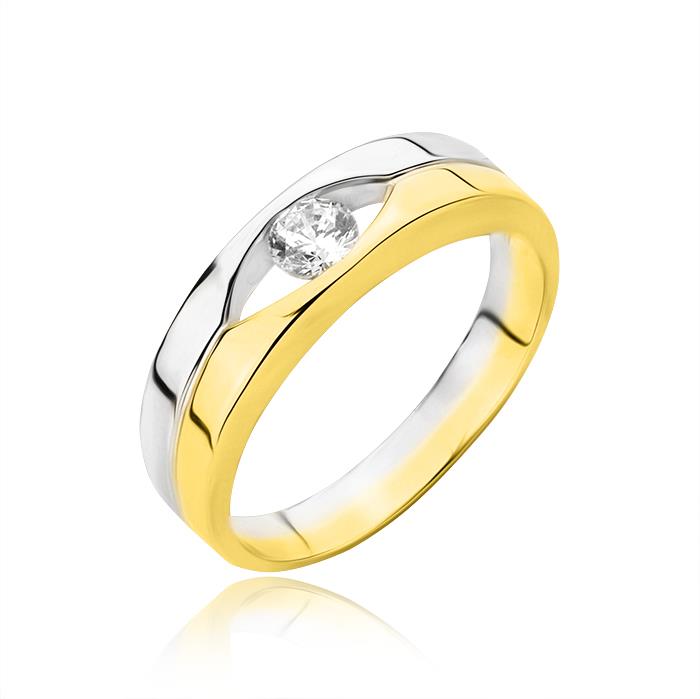 Złoty pierścionek dwuelementowy z cyrkonią