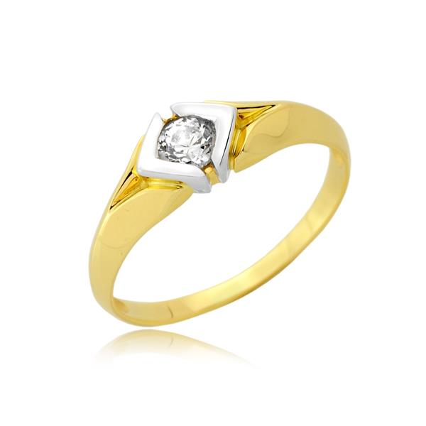 Złoty pierścionek rodowany z cyrkonią