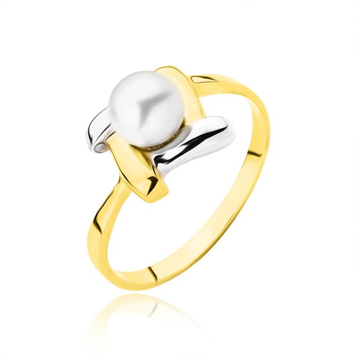 Złoty pierścionek rodowany z perłą hodowlaną