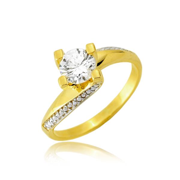 Złoty pierścionek rodowany z cyrkonią