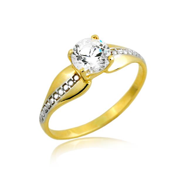 Złoty pierścionek rodowany z cyrkonią