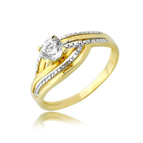 Złoty pierścionek rodowany z cyrkonią
