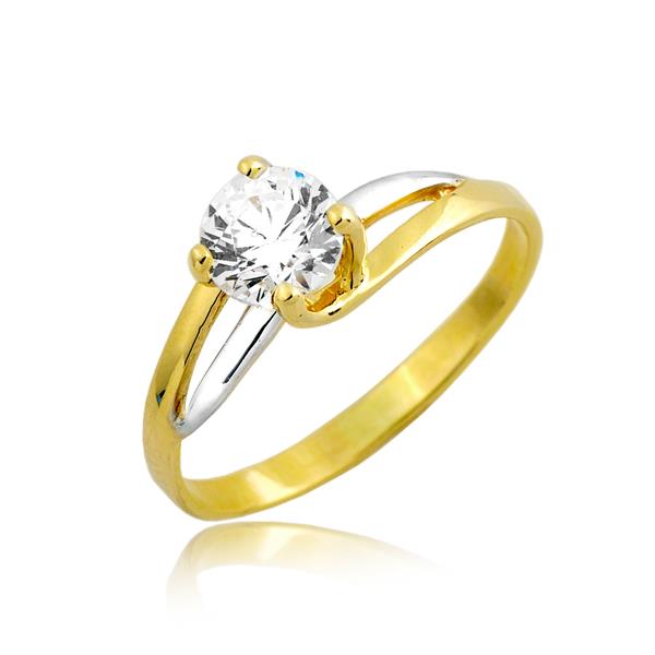 Złoty pierścionek rodowany z cyrkonią
