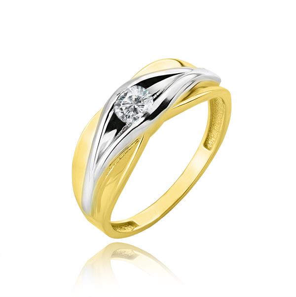Złoty pierścionek rodowany z cyrkonią