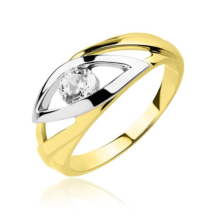 Złoty pierścionek rodowany z cyrkonią