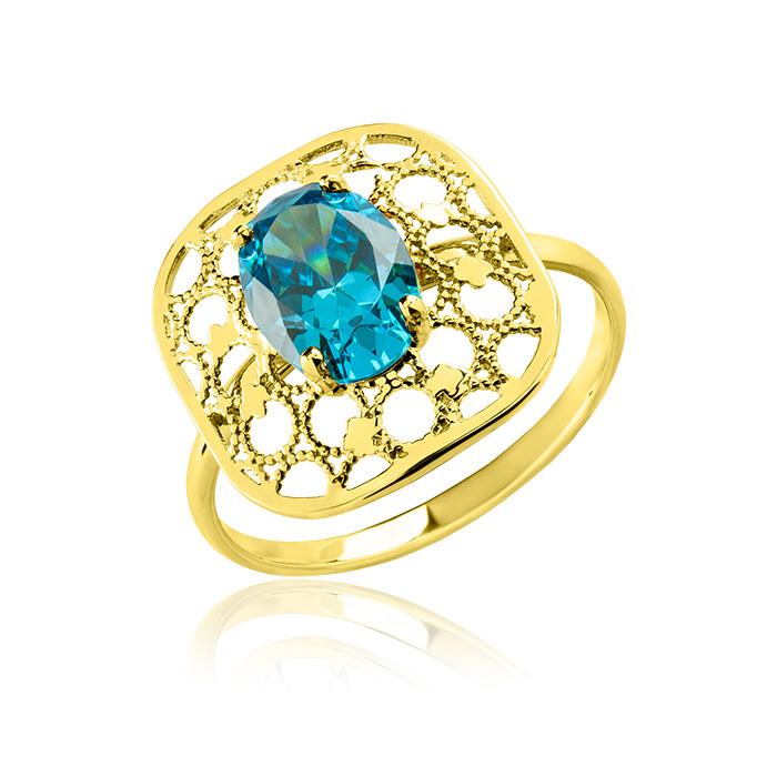 Złoty pierścionek z kamieniem Topaz Blue 8x6