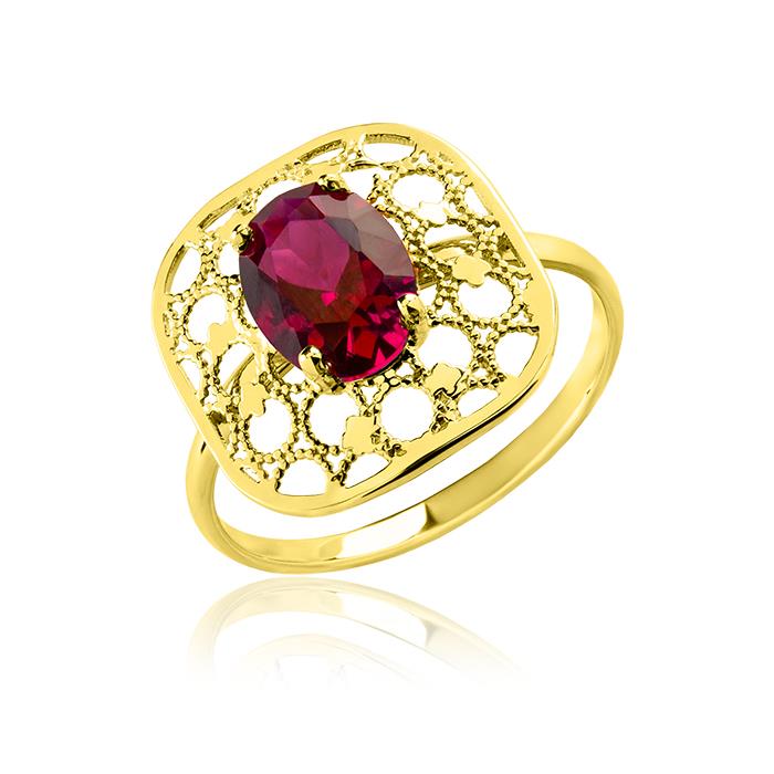 Złoty pierścionek z rubinem syntetycznym 8x6
