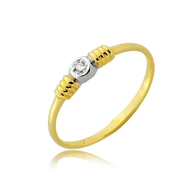 Złoty pierścionek rodowany z cyrkonią