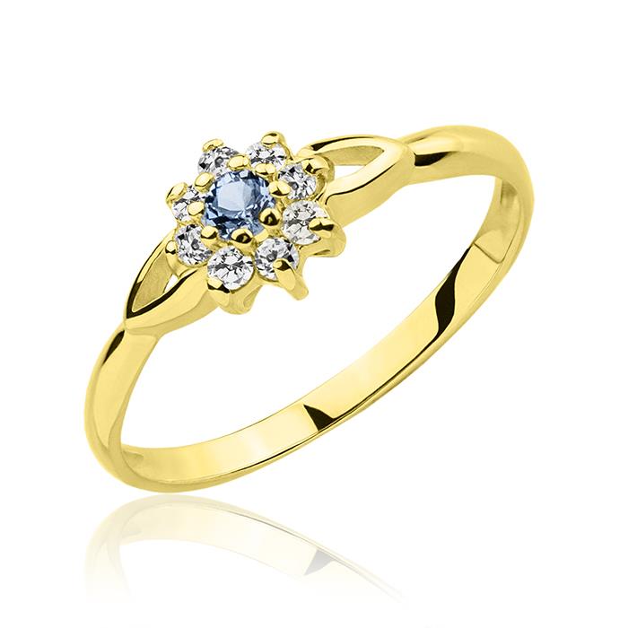 Złoty pierścionek z akwamarynem i cyrkoniami