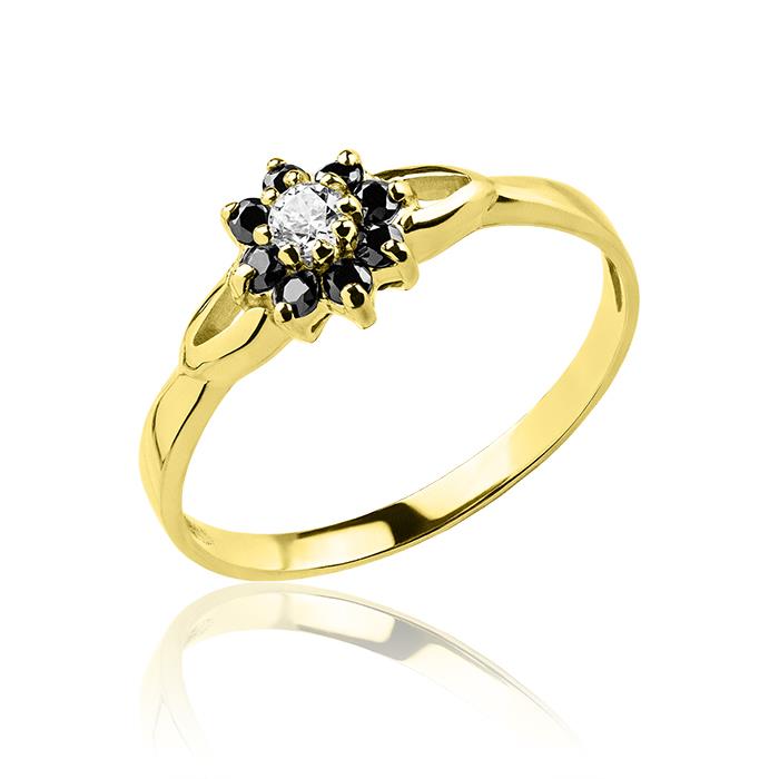 Złoty pierścionek z szmaragdem i cyrkoniami