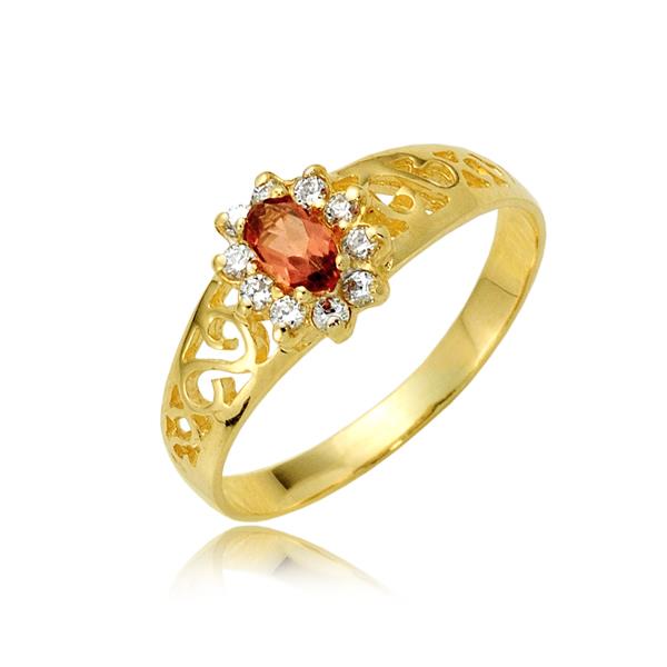 Złoty pierścionek z granatem i cyrkoniami