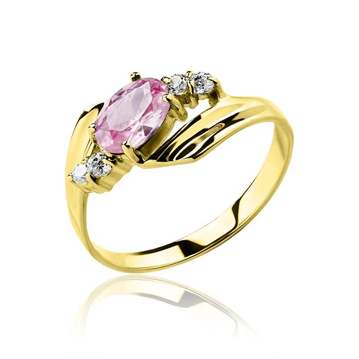 Złoty pierścionek z różową cyrkonią