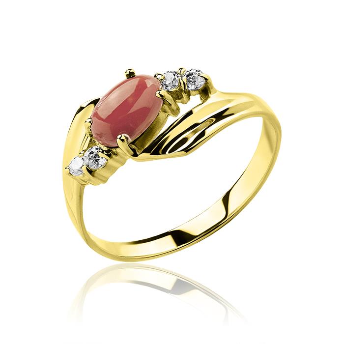 Złoty pierścionek z koralem i cyrkoniami