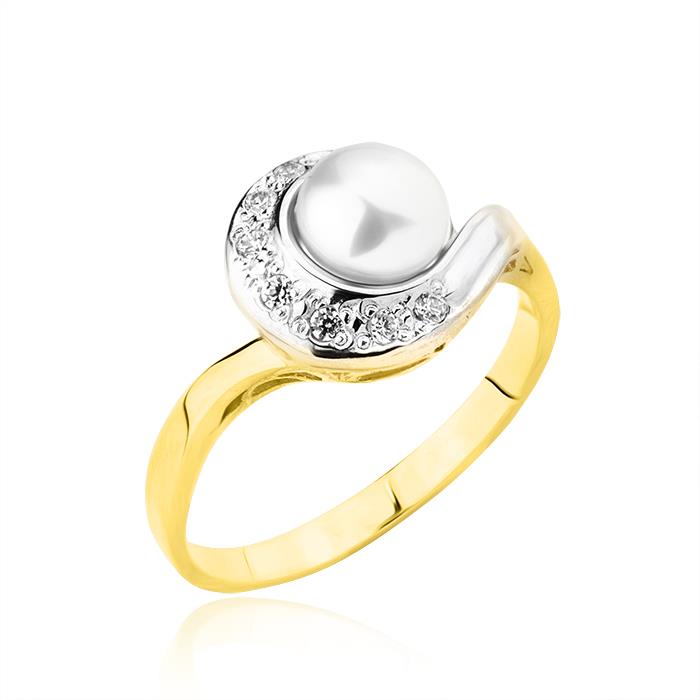 Złoty pierścionek z perłą hodowlaną i cyrkoniami