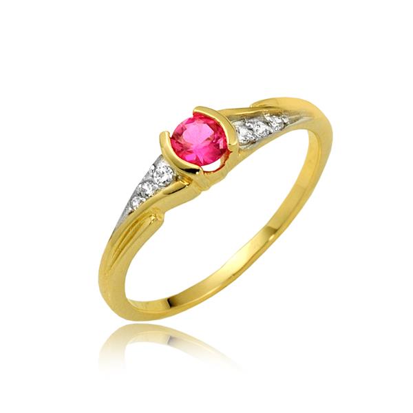 Złoty pierścionek rodowany z rubinem i cyrkoniami