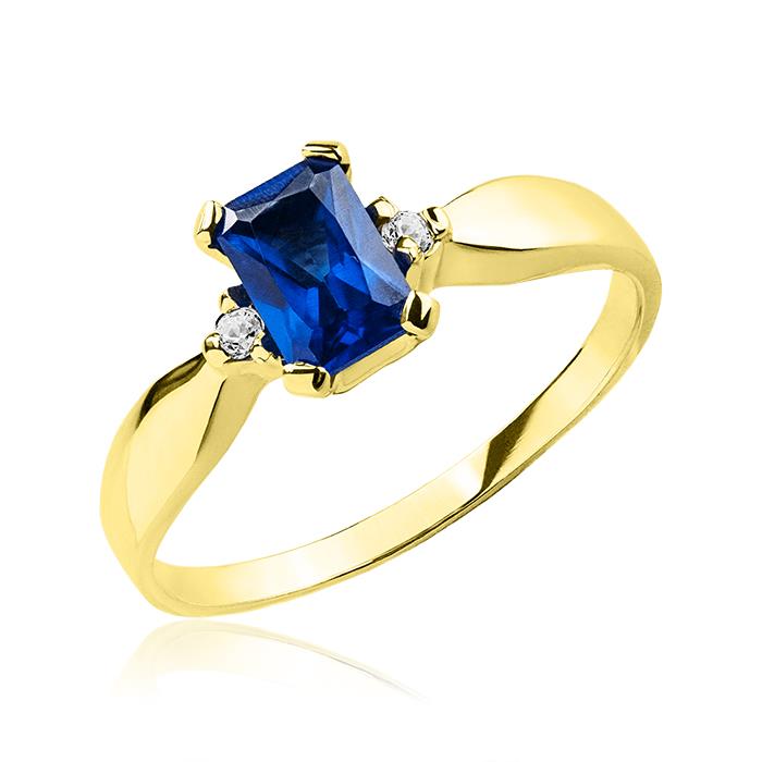 Złoty pierścionek z akwamarynem i cyrkoniami