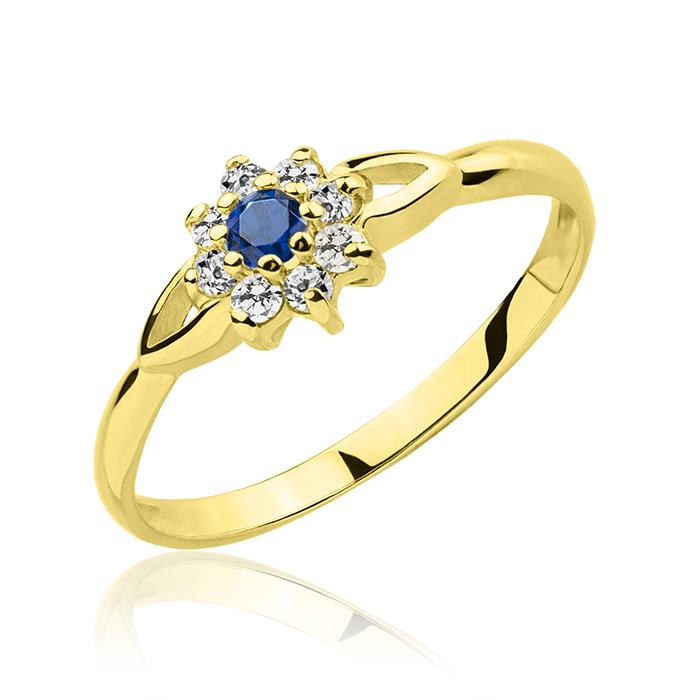 Złoty pierścionek z szafirem i cyrkoniami