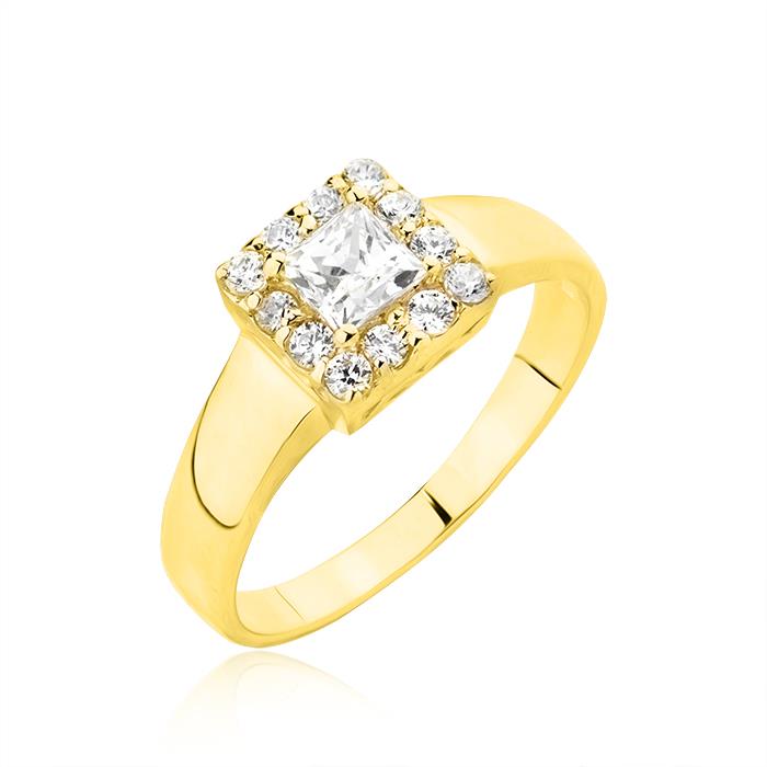 Złoty pierścionek z cyrkoniami
