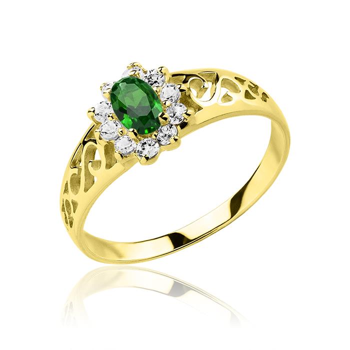 Złoty pierścionek z szmaragdem i cyrkoniami