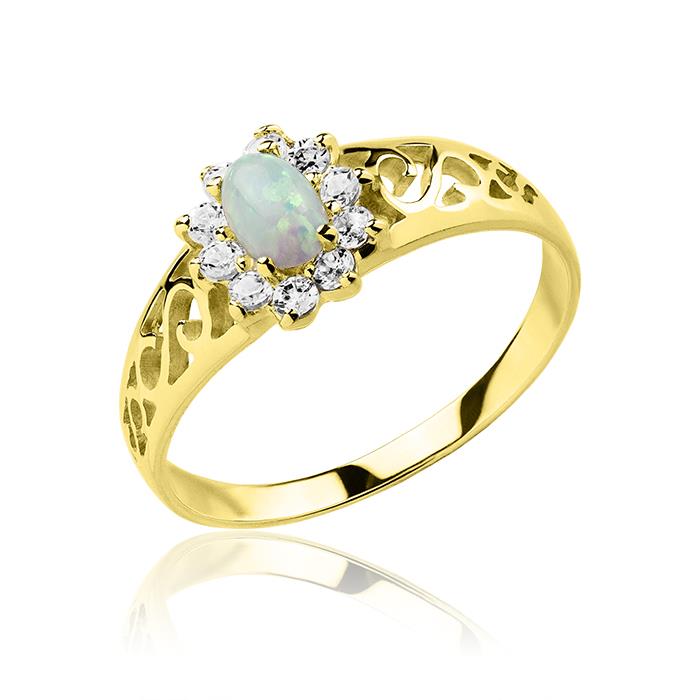 Złoty pierścionek z szmaragdem i cyrkoniami