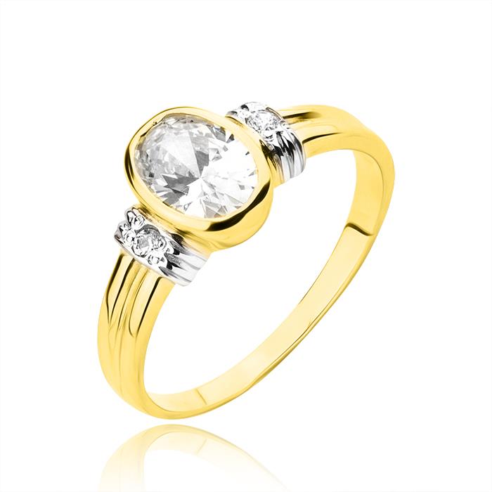 Złoty pierścionek rodowany z cyrkoniami