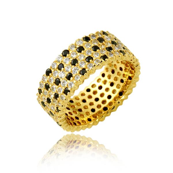 Złoty pierścionek z biało-czarnymi cyrkoniami