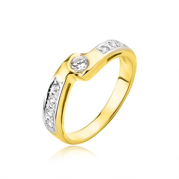 Złoty pierścionek rodowany z cyrkoniami