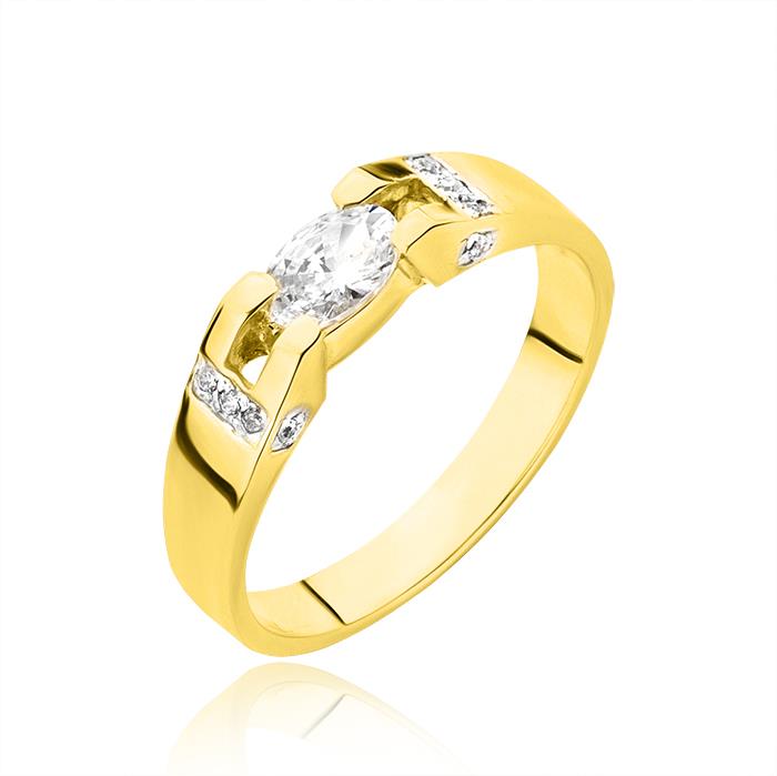 Złoty pierścionek rodowany z cyrkoniami