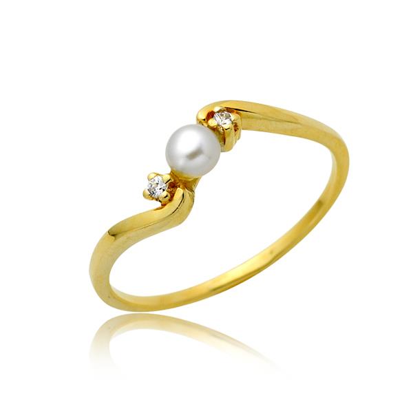 Złoty pierścionek z perłą hodowlaną i cyrkoniami