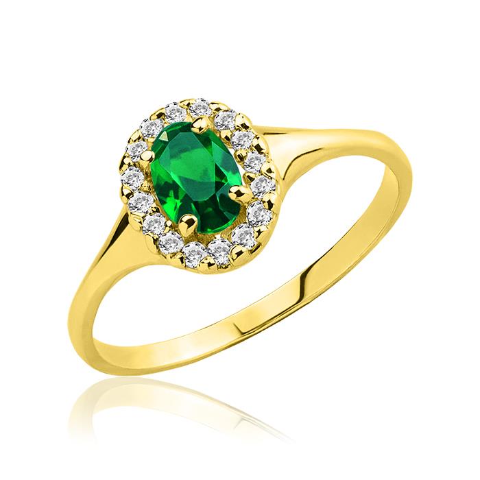 Złoty pierścionek z szmaragdem i cyrkoniami 6x4