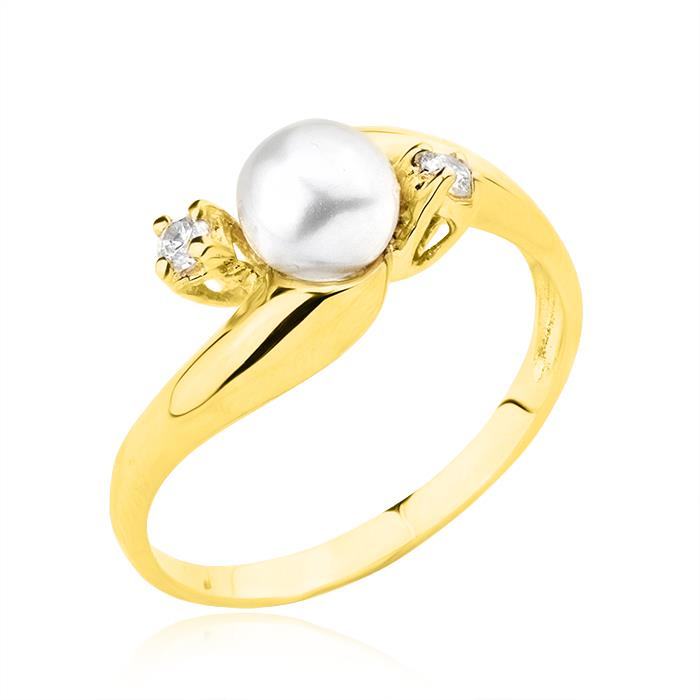 Złoty pierścionek z perłą hodowlaną i cyrkoniami