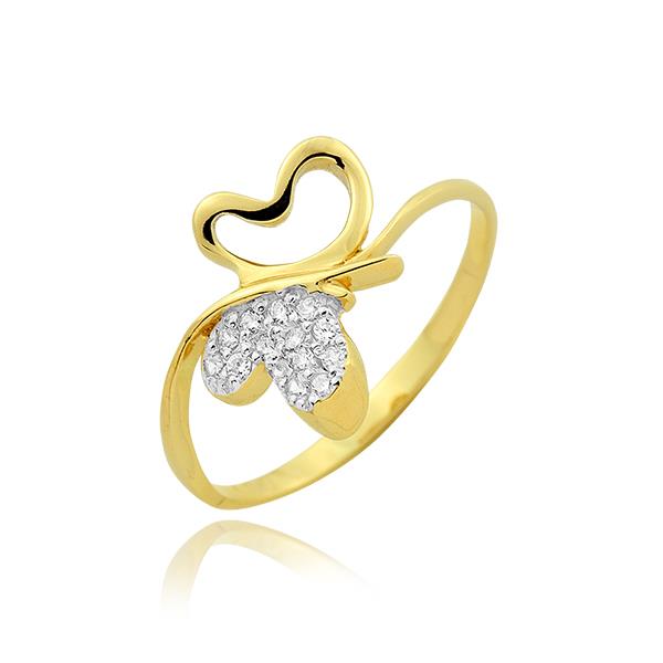 Złoty pierścionek motyl z cyrkoniami