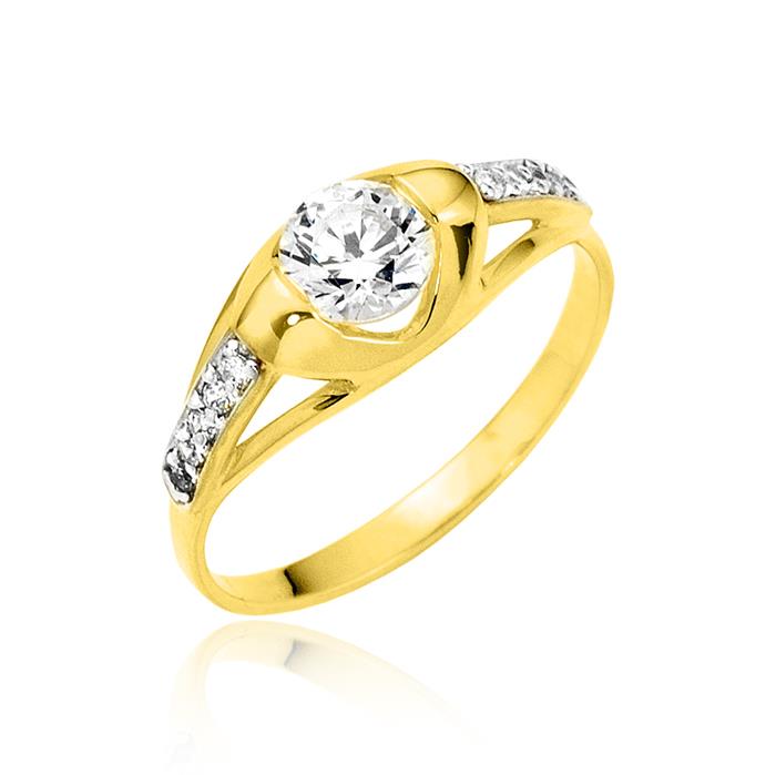 Złoty pierścionek rodowany z cyrkoniami