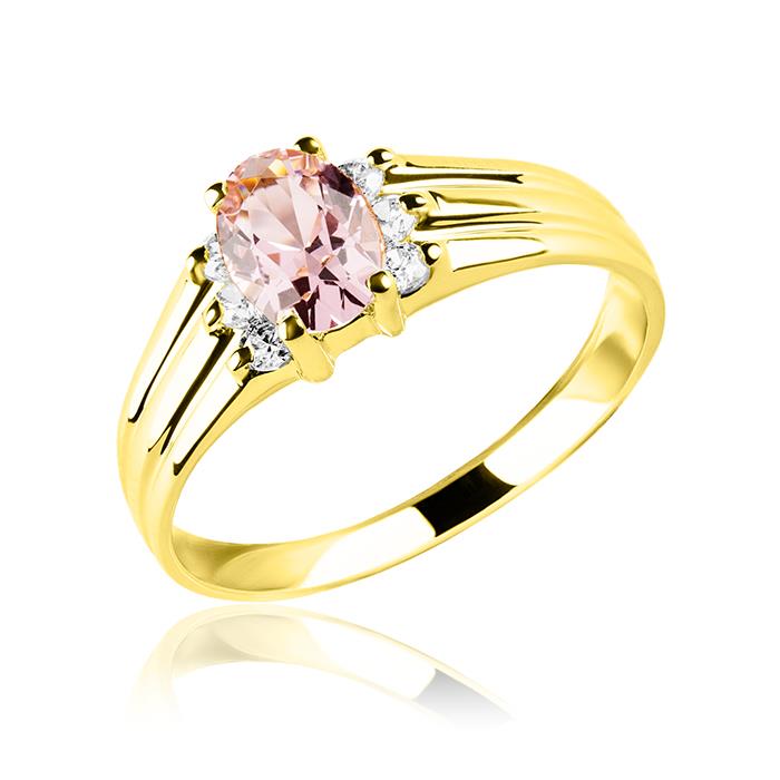 Złoty pierścionek z morganitem pink i cyrkoniami