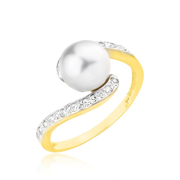 Złoty pierścionek z perłą hodowlaną i cyrkoniami