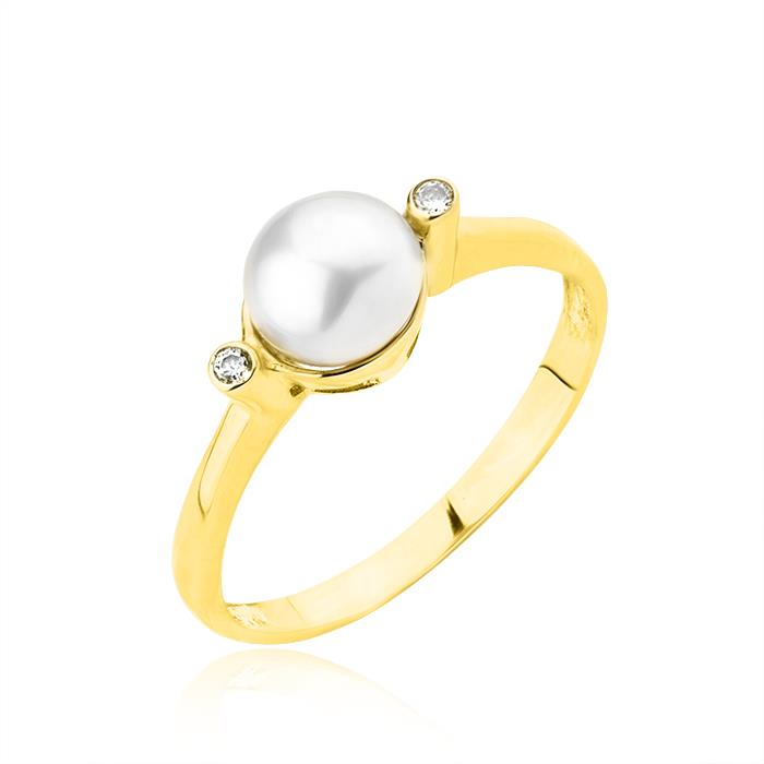 Złoty pierścionek z perłą hodowlaną i cyrkoniami