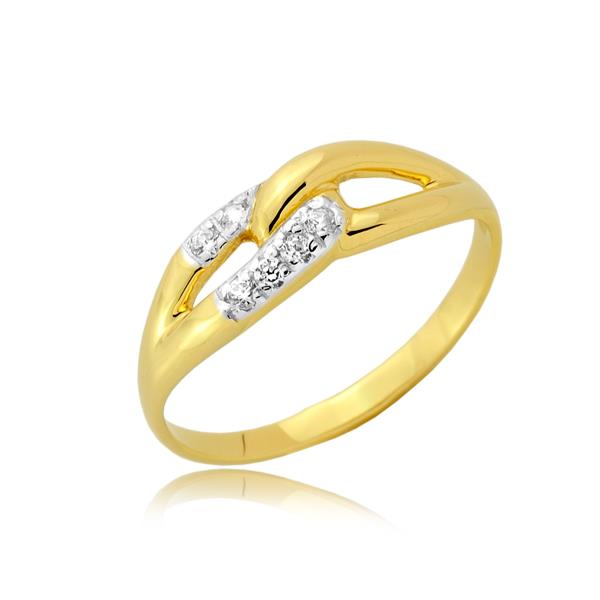 Złoty pierścionek rodowany z cyrkoniami