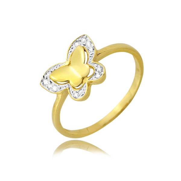 Złoty pierścionek rodowany motyl z cyrkoniami