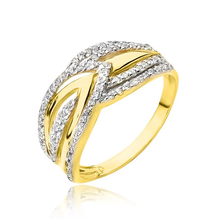 Złoty pierścionek rodowany z cyrkoniami