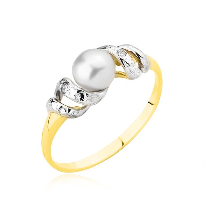 Złoty pierścionek z perłą hodowlaną i cyrkoniami