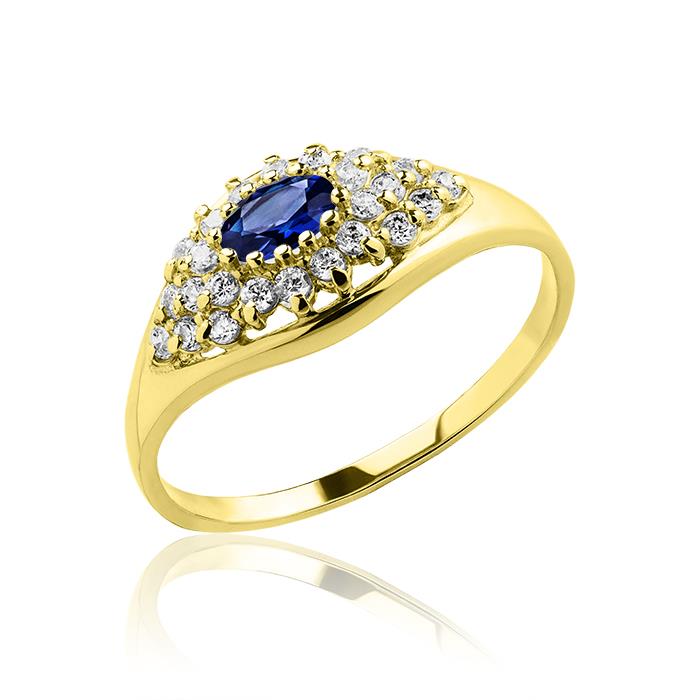 Złoty pierścionek z szafirem i cyrkoniami