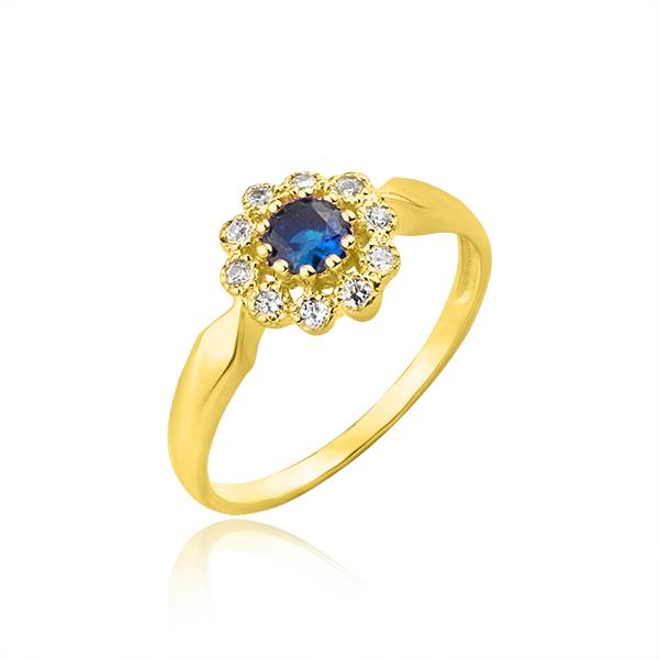 Złoty pierścionek z szafirem i cyrkoniami