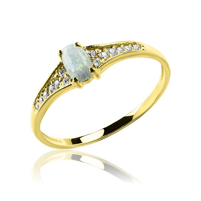 Złoty pierścionek z akwamarynem i cyrkoniami