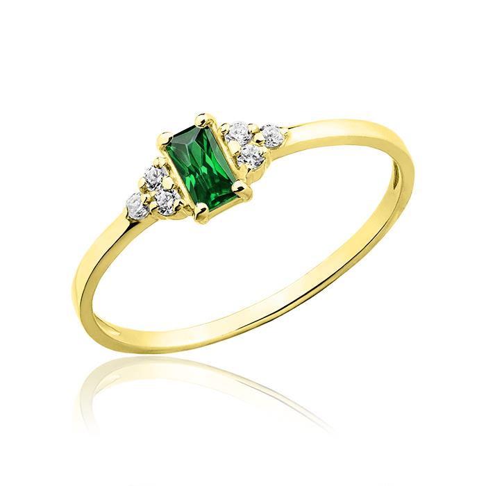 Złoty pierścionek z szmaragdem i cyrkoniami