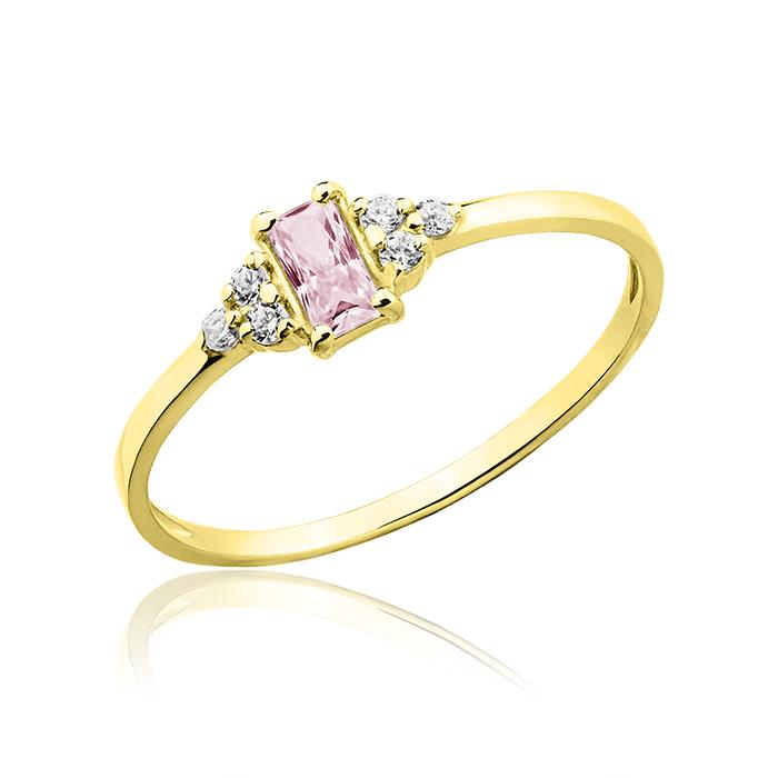 Złoty pierścionek z różową cyrkonią i cyrkoniami