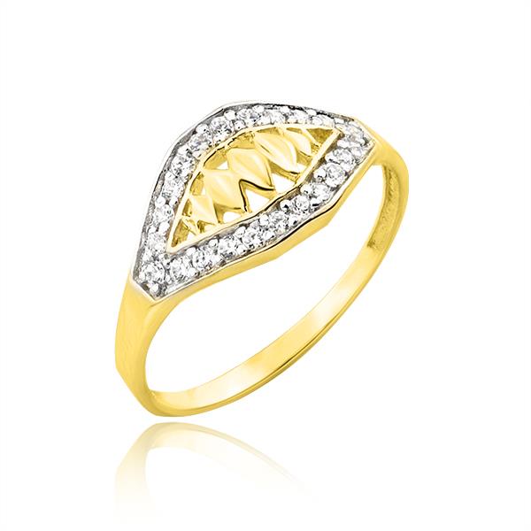 Złoty pierścionek rodowany z cyrkoniami