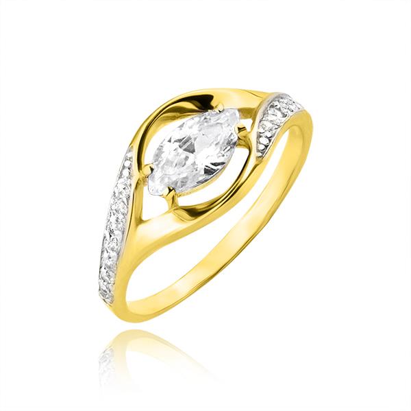 Złoty pierścionek rodowany z cyrkoniami
