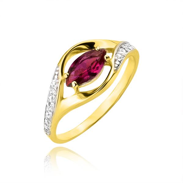 Złoty pierścionek rodowany z rubinem i cyrkoniami