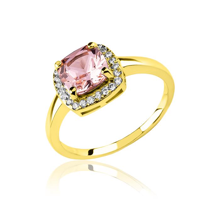 Złoty pierścionek z morganitem pink i cyrkoniami