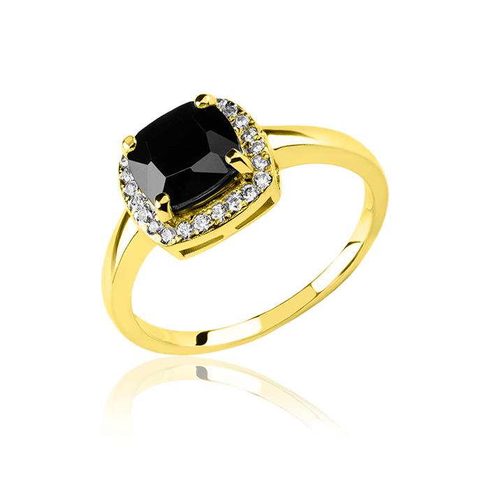 Złoty pierścionek z czarną cyrkonią